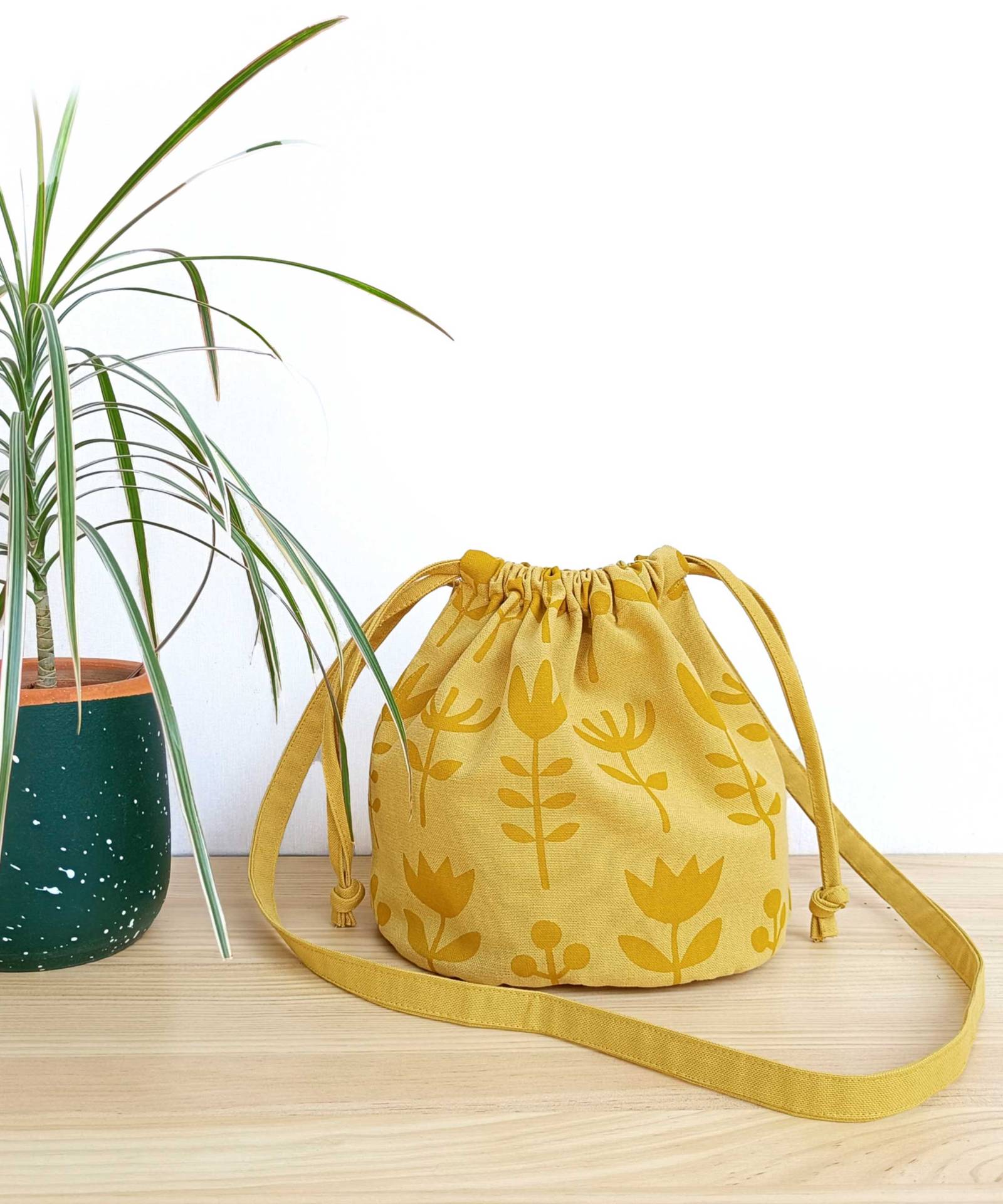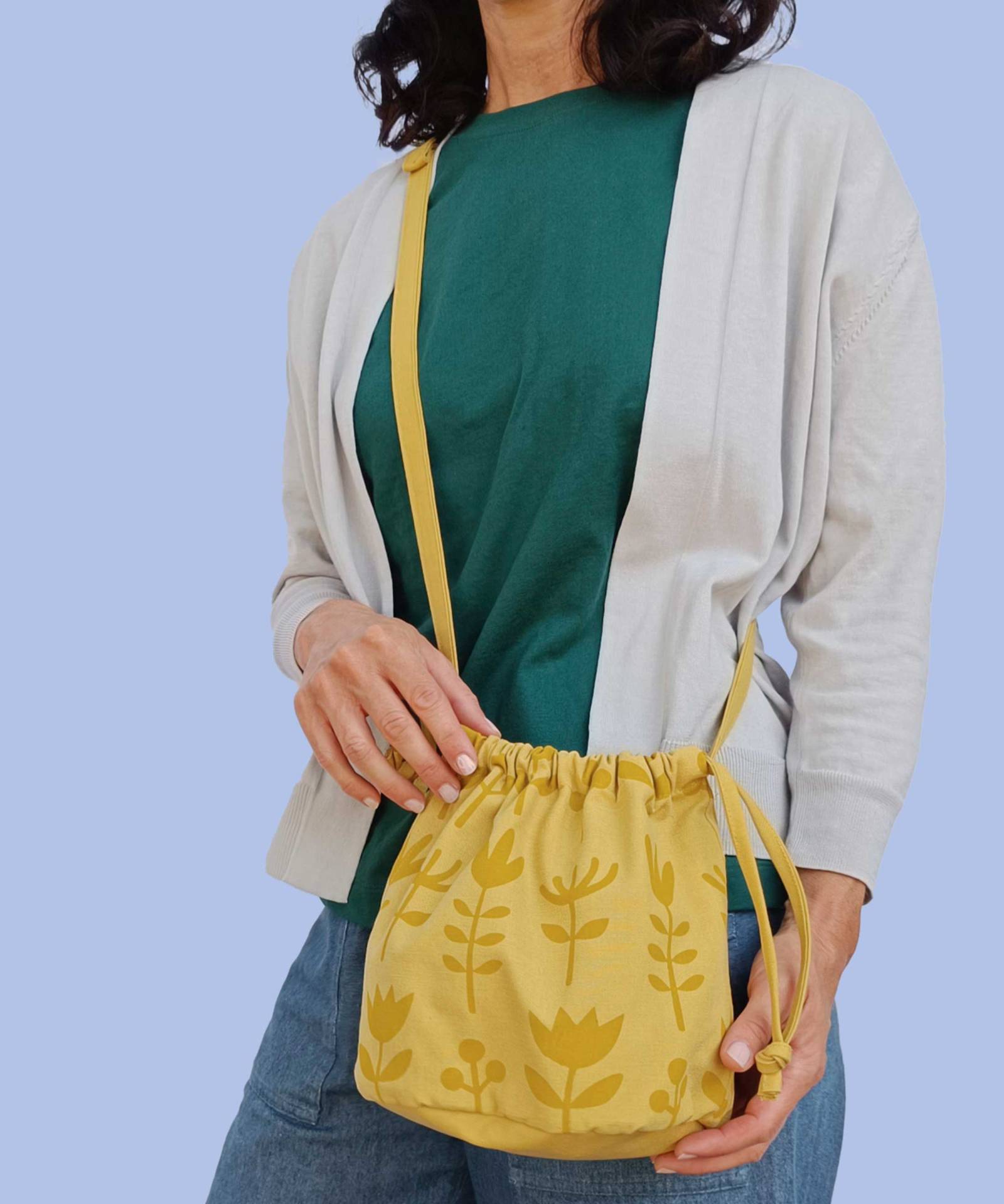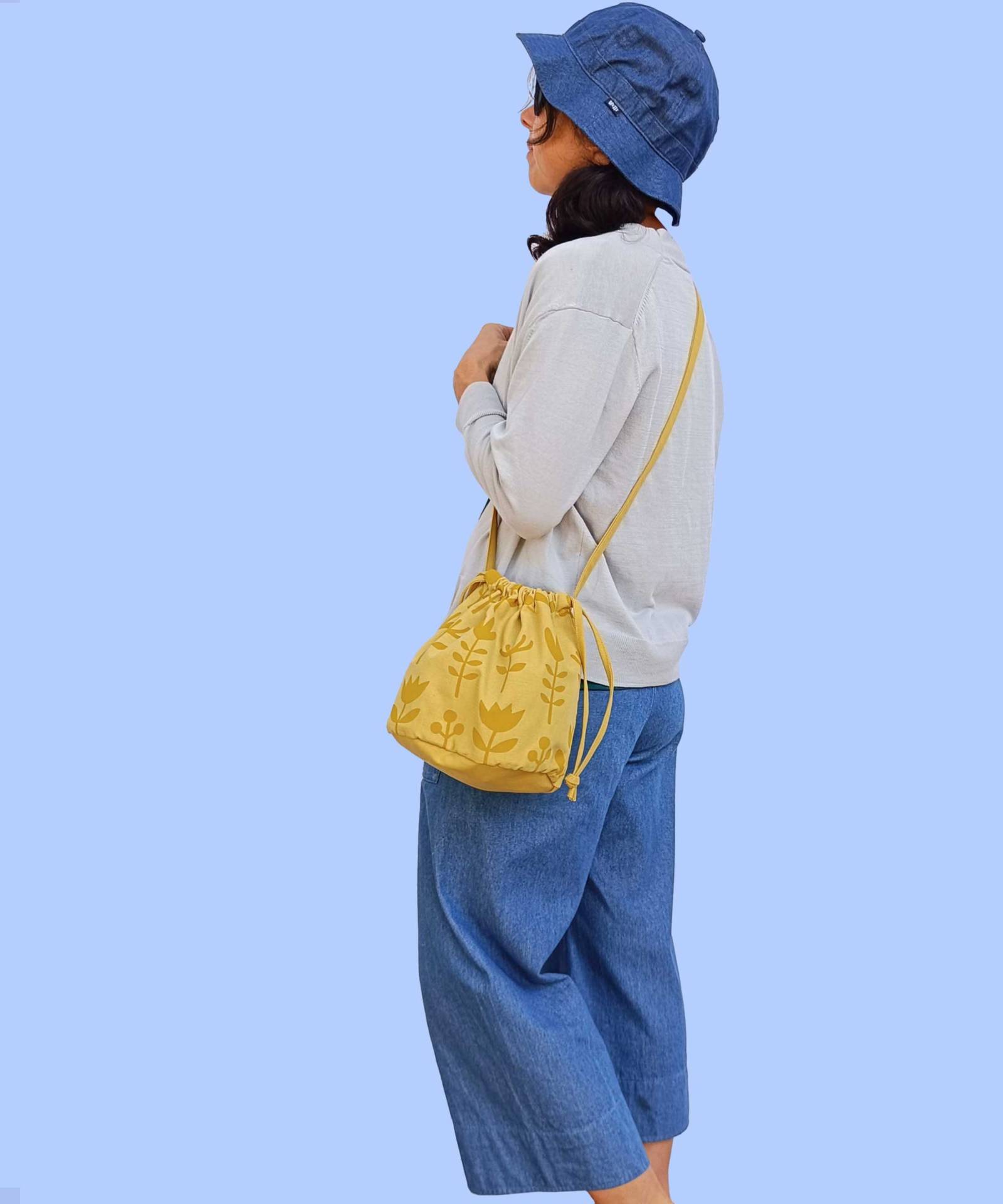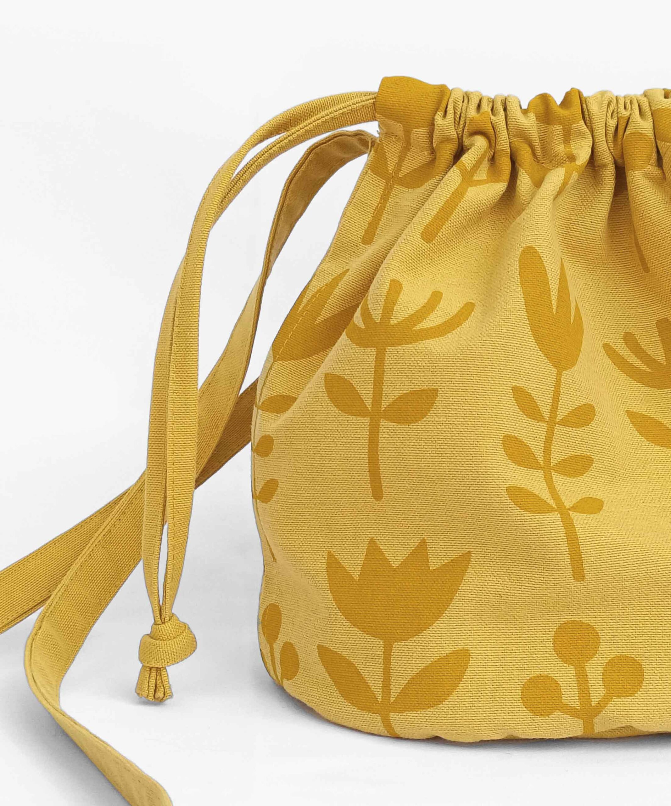El bolso Saco está completamente hecho a mano de principio a fin. La tela es algodón 100% y está serigrafiada a mano y confeccionado en nuestro pequeño taller.