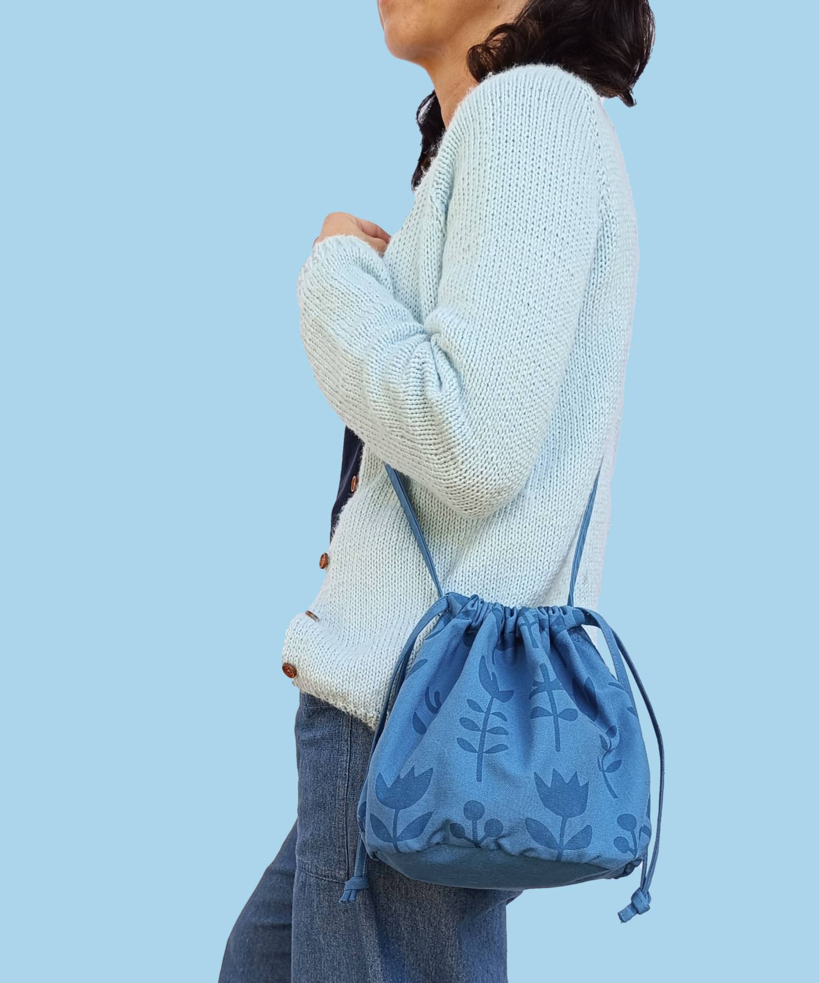 El bolso Saco está completamente hecho a mano de principio a fin. La tela es algodón 100% y está serigrafiada a mano y confeccionado en nuestro pequeño taller.