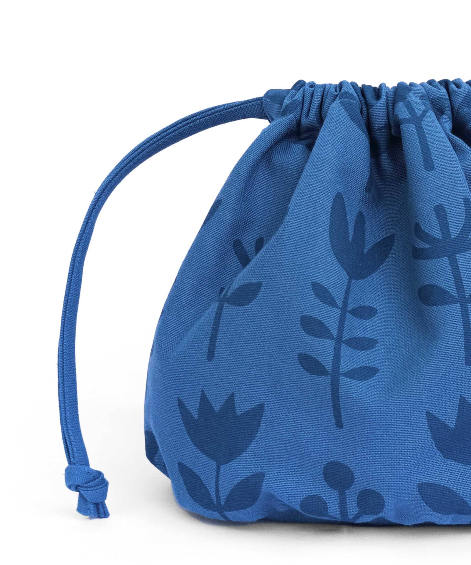 Pequeño bolso con forma de saco en turquesa completamente hecho a mano en España. 100% algodón serigrafiado artesanalmente.