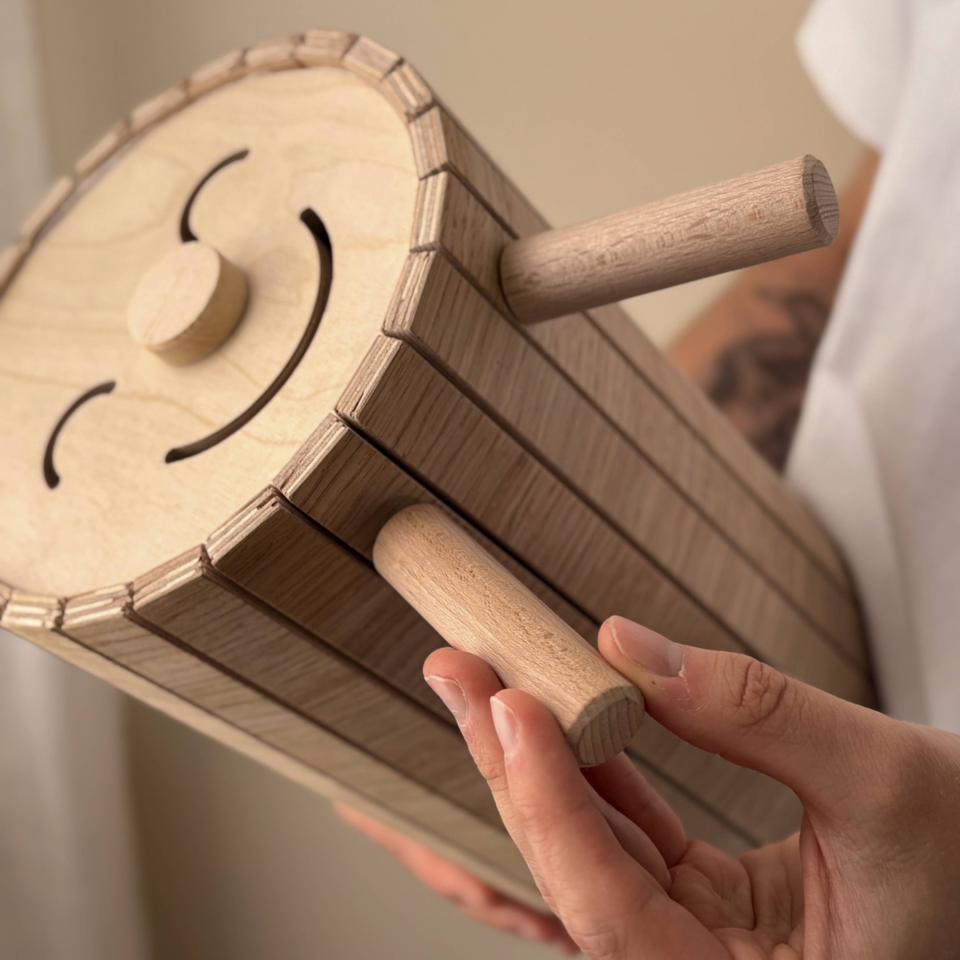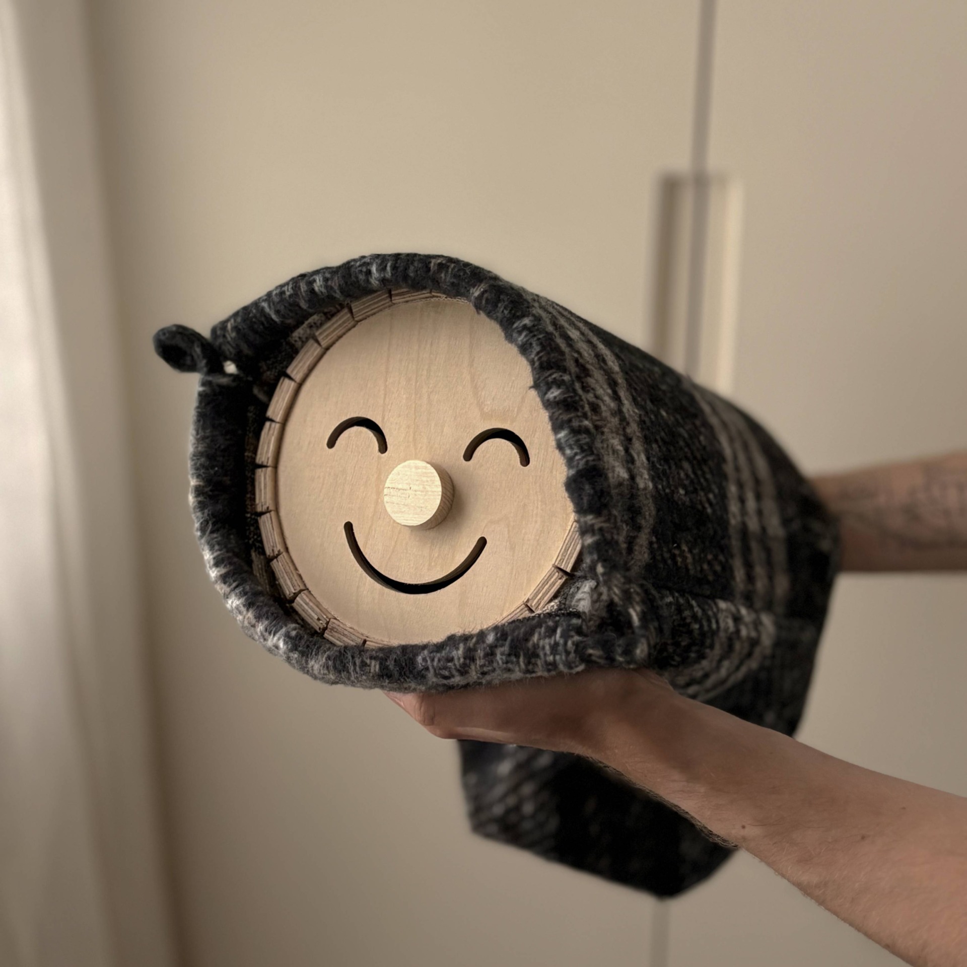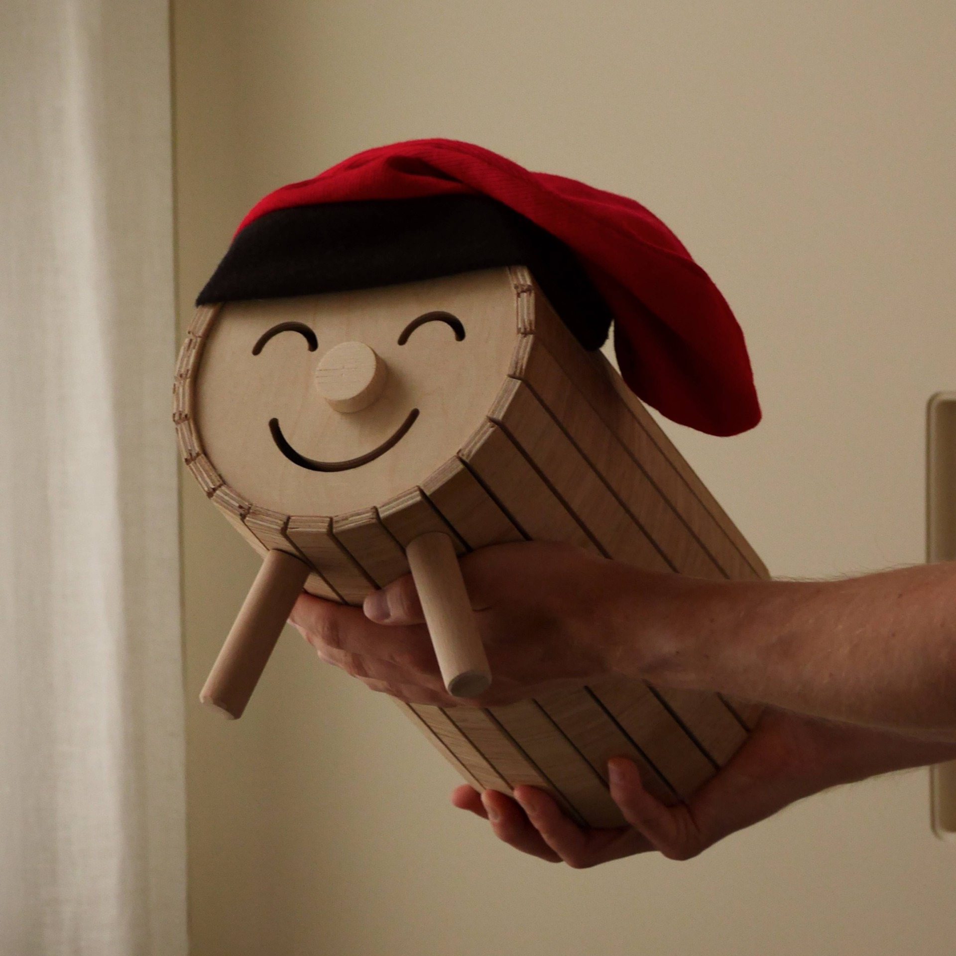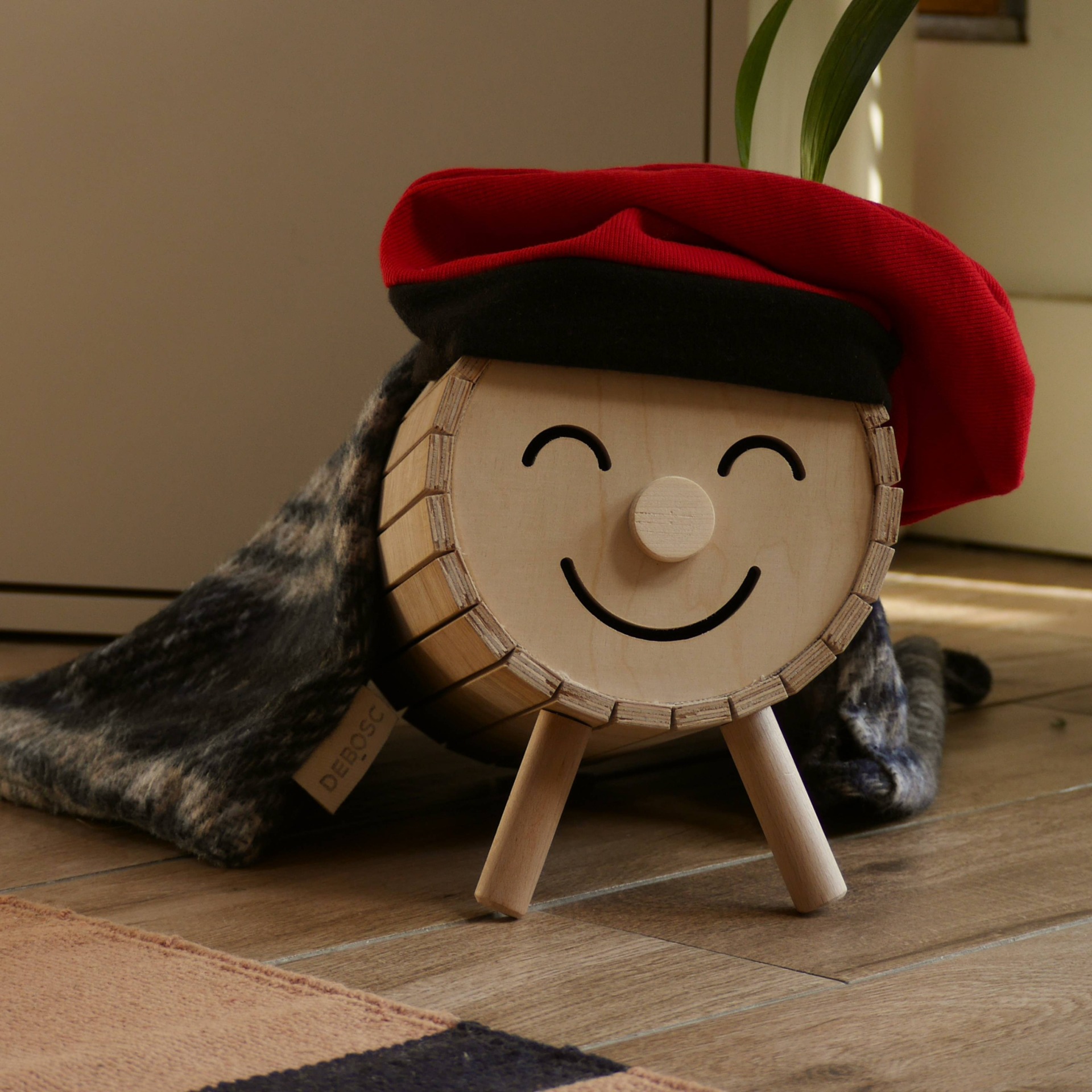 El Tió es también la memoria del papel fundamental de la tierra y de los bosques en Cataluña. Por eso, en Debosc han querido crear un Tió de forma artesana y local, celebrando la esencia de esta tradición ancestral, pero jugando con la madera para conseguir un diseño innovador, moderno y minimalista. El Tió Gros (esto es, el tronco grande) es de madera de abedul con el cuerpo acabado en chapa de roble y mide 30 cm de largo. Tiene una cara muy simpática y un culo extraíble que permite acceder a la barriga de este glotón y asegurarnos de que cague bien. Además, va cargado de complementos, todos hechos en casa de la familia Debosc.
