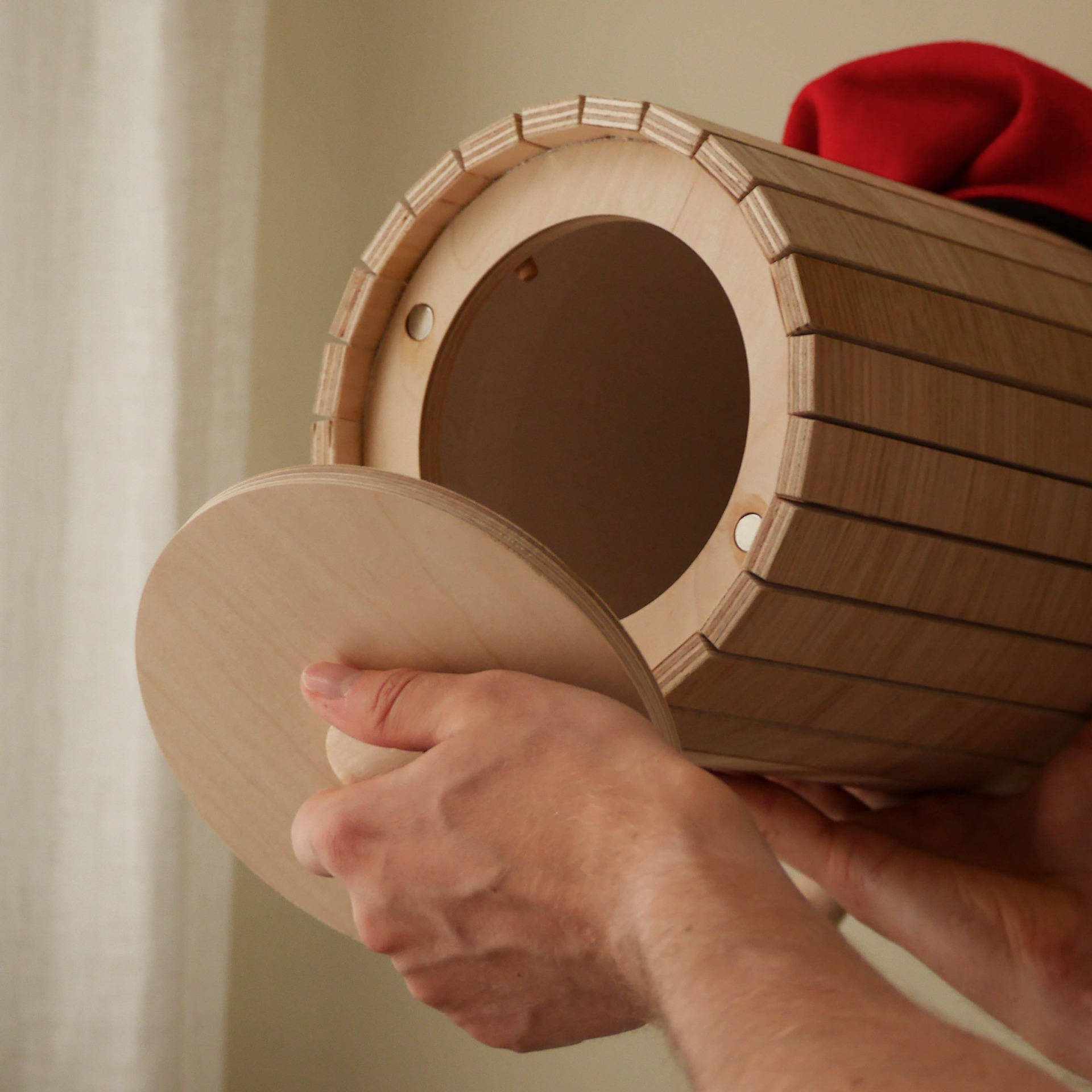 1 cerco y 1 círculo de contrachapado de abedul de 9 mm sin tratar, con 2 pares de imanes encastrados en la madera, como carcasa y culo del Tió.