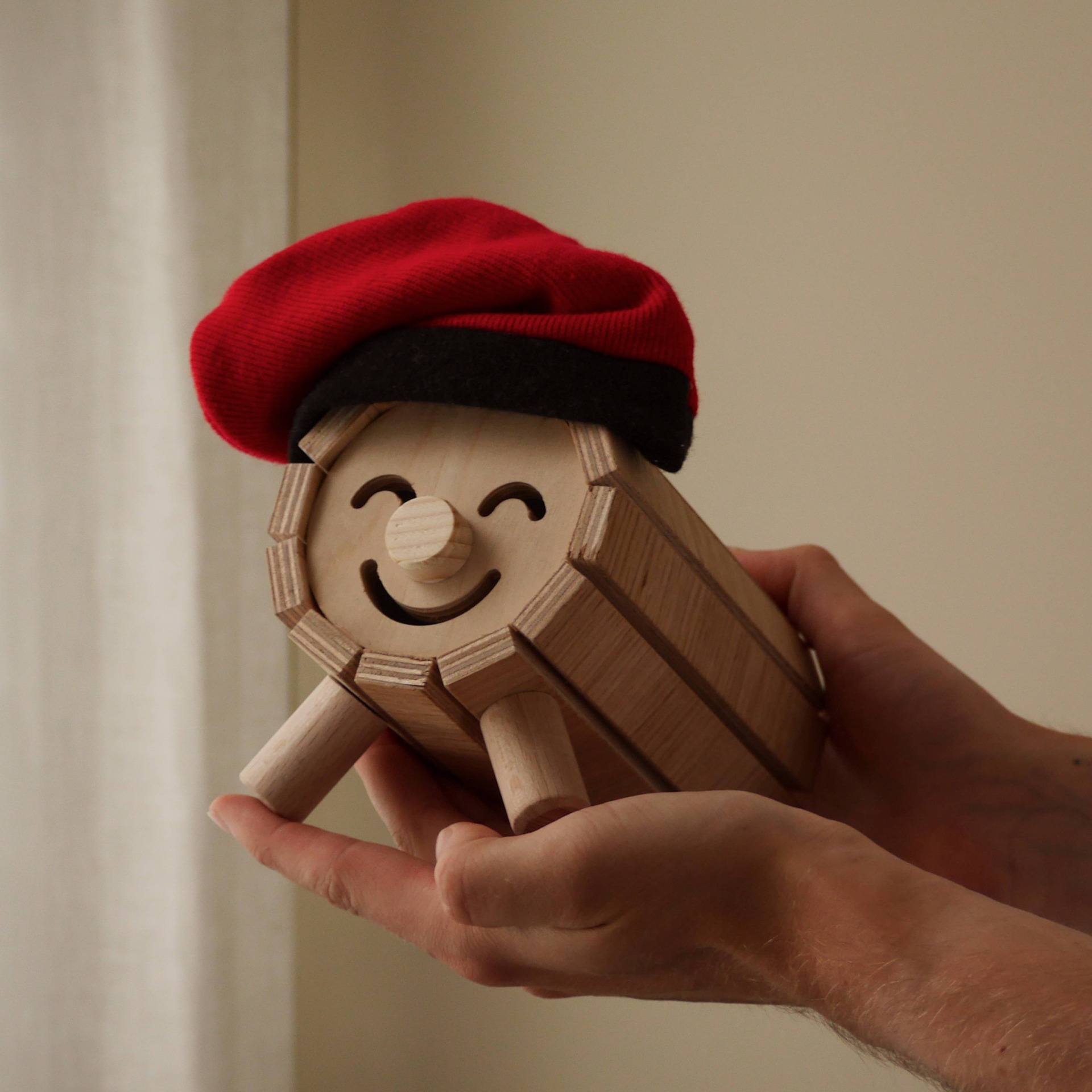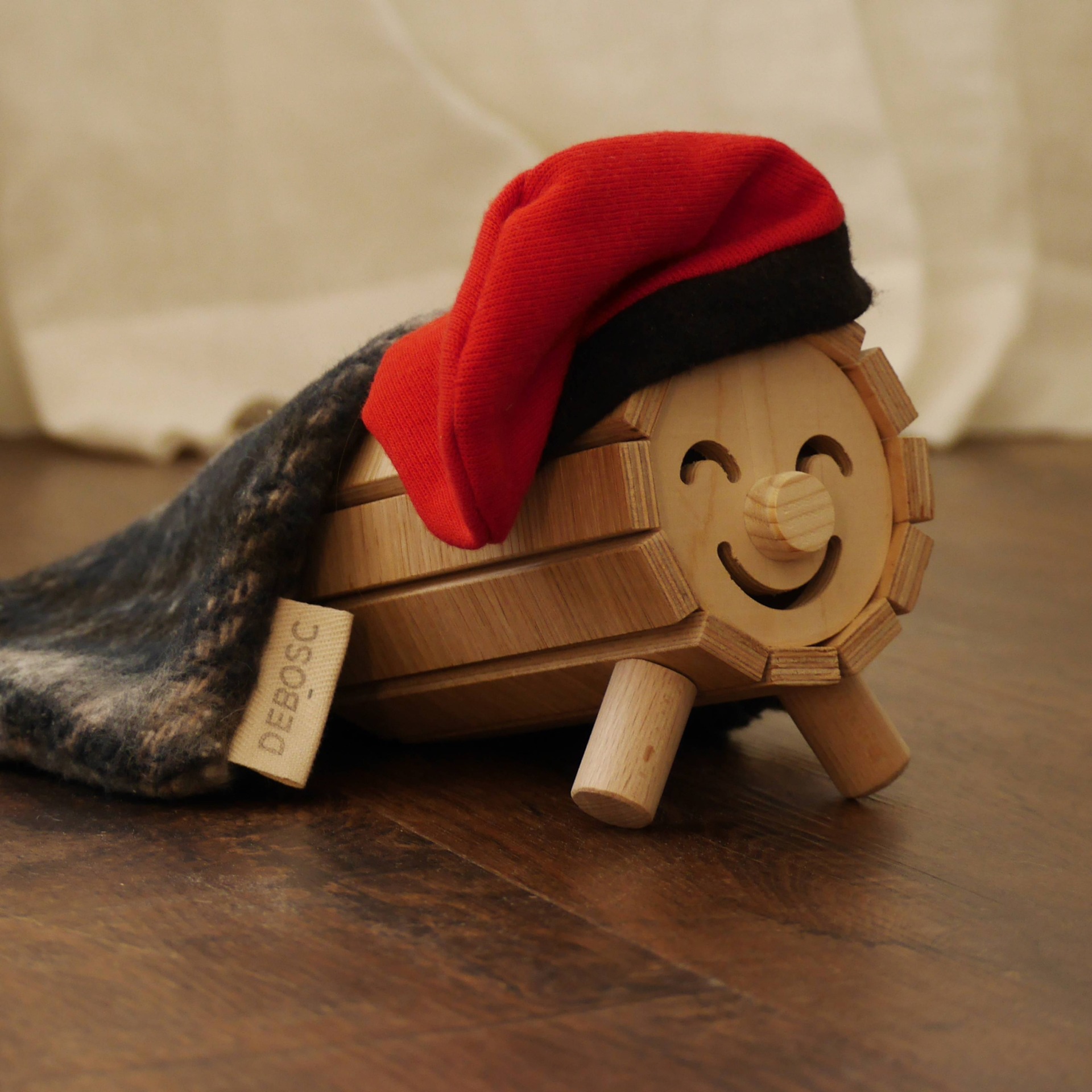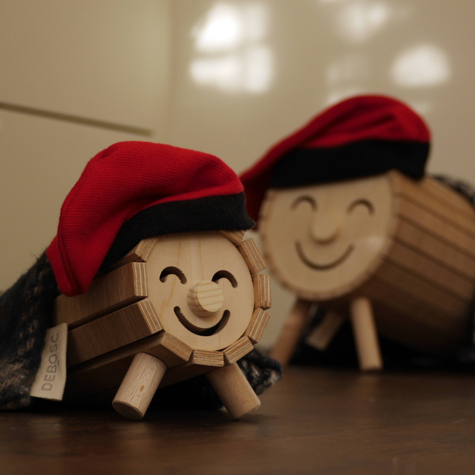 El Tió es también la memoria del papel fundamental de la tierra y de los bosques en Cataluña. Por eso, en Debosc han querido crear un Tió de forma artesana y local, celebrando la esencia de esta tradición ancestral, pero jugando con la madera para conseguir un diseño innovador, moderno y minimalista. El Tió Petit (esto es, el tronco pequeño) es de madera de abedul con el cuerpo acabado en chapa de roble, mide 15 cm de largo y tiene una cara muy simpática. Además, va cargado de complementos, todos hechos en casa de la familia Debosc.