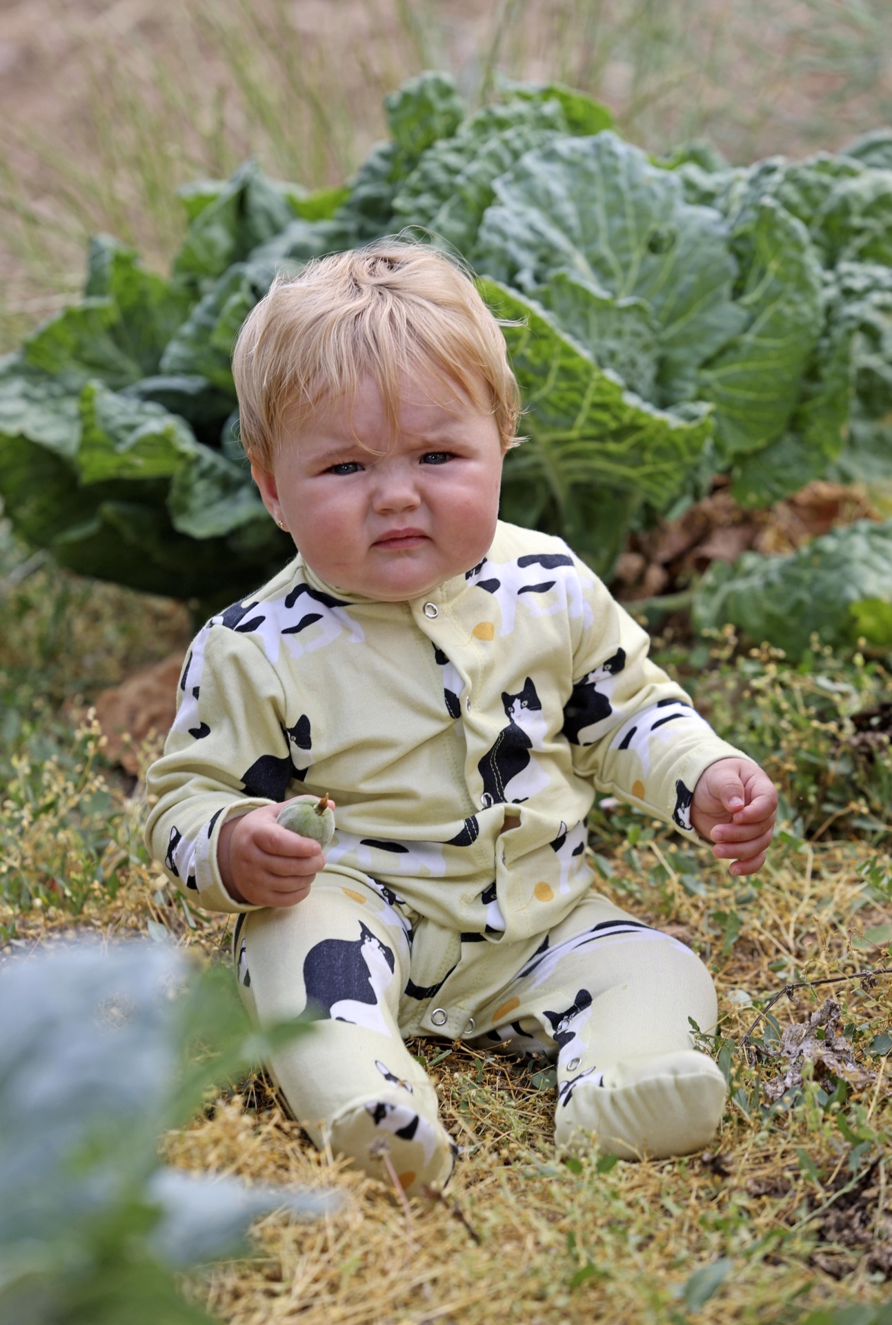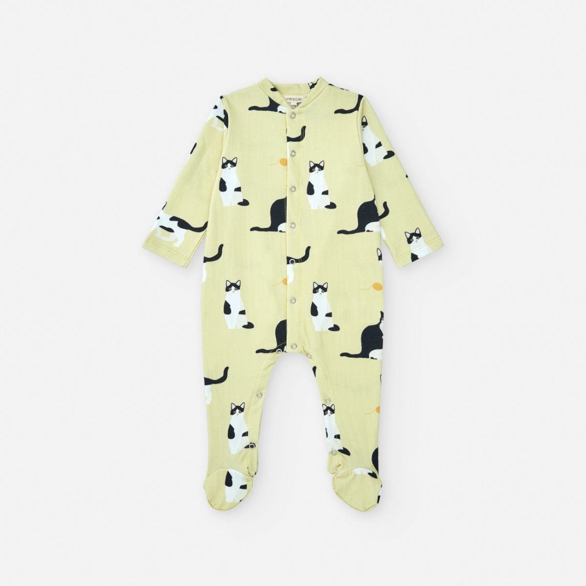 Un mono práctico y adorable para los primeros meses del bebé. Este mono con estampado de gatos combina comodidad, suavidad y estilo, pensado para acompañar al recién nacido en sus primeros días y semanas.